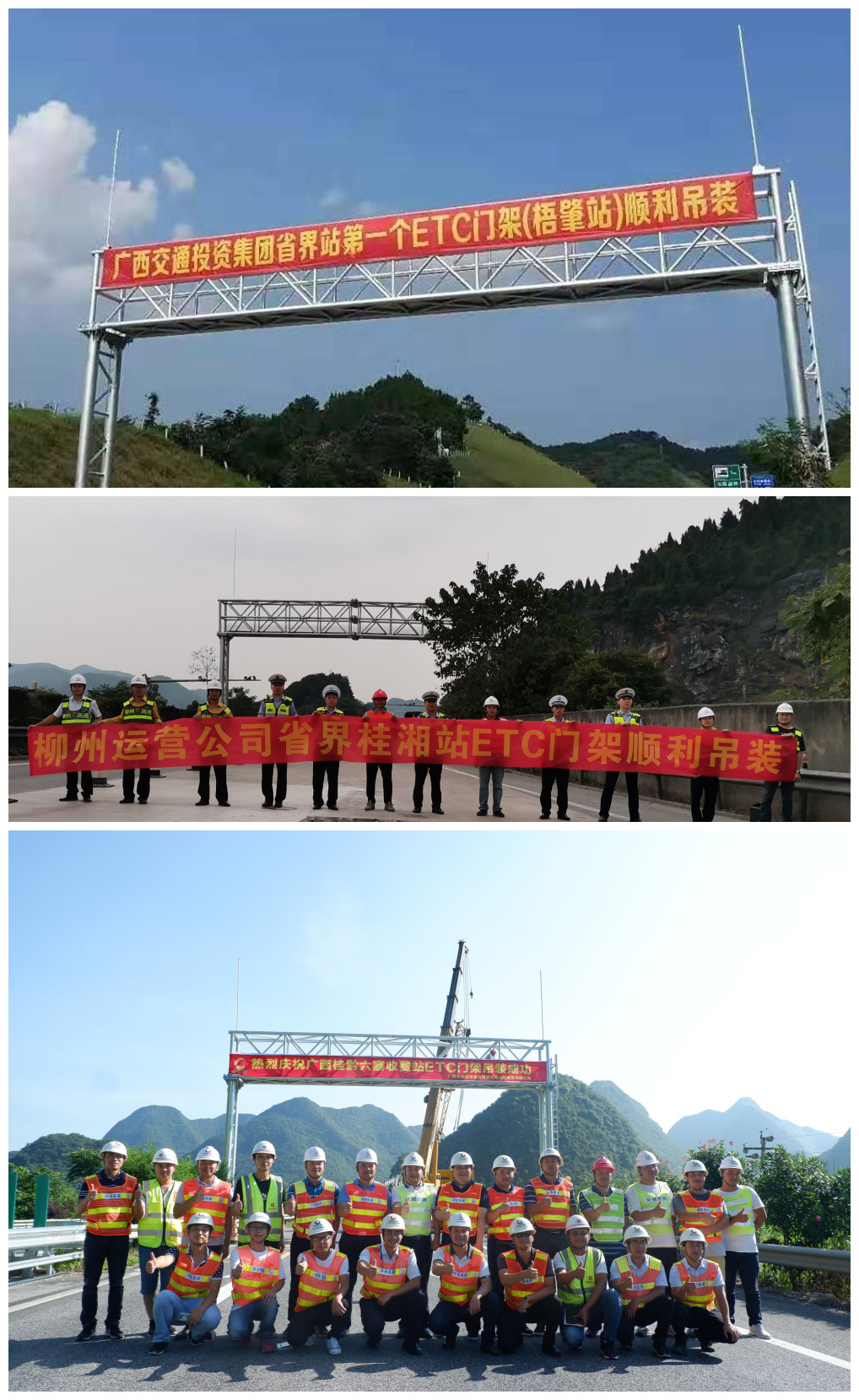 對工程建設中存在的問題,各駐點工作隊、職能小組主動認賬擔責,落細落小,整改到位。欽崇片區(qū)、柳州片區(qū)著眼當前工作重點,以實實在在的改變?yōu)楦髌瑓^(qū)整改問題作出表率,欽崇片區(qū)整改后門架整體施工時間比原來縮短1小時,交通管制時間縮短一半,極大地加快了施工效率,欽崇片區(qū)預計在未來3天內連續(xù)吊裝5個門架,力爭打造集團首例連續(xù)多套門架吊裝作業(yè)示范點。柳州片區(qū)柳南高速因地制宜,結合時段車流量特點,靈活調度,將入場時間調整至早晨6:00,最大限度降低因施工造成的車輛擁堵現象,在強有力的組織舉措下,柳州片區(qū)一天內完成了4個門架吊裝,其中省界門架2個。各片區(qū)比學趕超氛圍濃厚,全面掀起了工程建設熱潮。