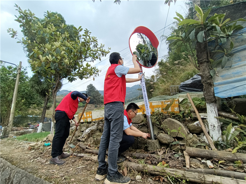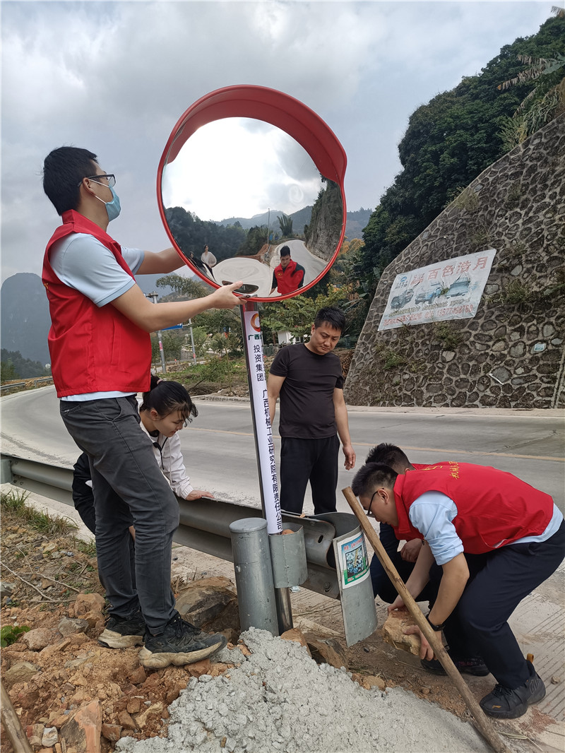 根據機械院與峰洋村在安全隱患排查工作中發現的問題,志愿者團隊在村內5處三叉路口安裝了凸面鏡,有效解決了農村拐彎處視線不足的交通安全隱患。