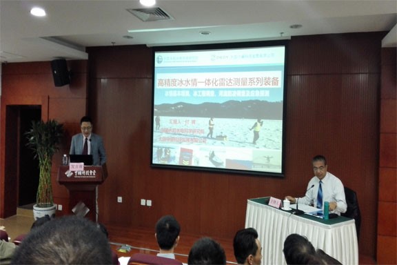 峰會會場內(nèi),中國水利水電科學研究院付輝博士做了題為《高精度冰水情一體化雷達測量系列裝備》的報告,向與會專家就中國水科院與大連中??萍及l(fā)展有限公司冰水雷達技術(shù)創(chuàng)新合作成果做了專題報告,報告引起與會專家和業(yè)內(nèi)人士廣泛關(guān)注。