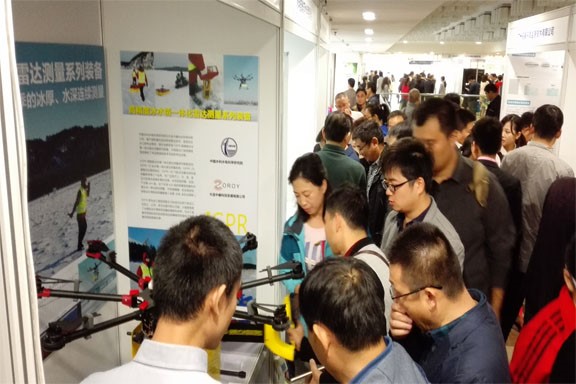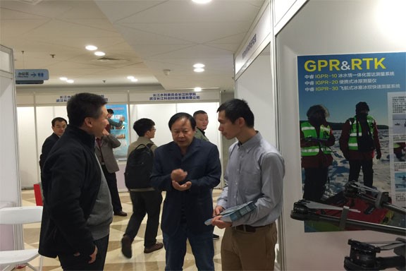 新技術(shù)成果裝備展示會場內(nèi),大連中??萍及l(fā)展有限公和中國水利水電科學研究院的聯(lián)合展位上,展出的冰水一體化雷達、無人機飛航測冰雷達和便攜式測冰雷達儀吸引了眾多與會代表參觀了解,詢問設備性能和技術(shù)指標,大連中??萍及l(fā)展有限公司副總經(jīng)理、陳潔博士熱情的為與會專家和代表做了詳細介紹和說明。