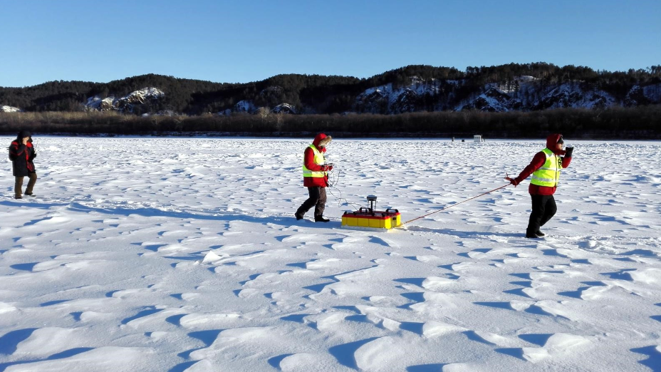 2015年12月,大連中睿科技發(fā)展有限公司與中國水利水電科學研究院合作,采用中睿科技創(chuàng)新研發(fā)的IGPR-10型冰厚水深綜合探測雷達,在我國北方的河流黑龍江漠河北極村段,成功進行了冰封河流冰厚水深連續(xù)綜合探測,開創(chuàng)性地獲取了高精度河流連續(xù)冰厚水深雷達圖像。通過沿河流中宏線、河流中宏到河岸橫斷線進行的10千米測線的探測作業(yè),IGPR-10型冰厚水深綜合探測雷達性能表現(xiàn)優(yōu)異,冰厚水深探測結(jié)果準確,作業(yè)快捷,并能夠同步精確坐標定位,可在-30度環(huán)境下穩(wěn)定可靠工作。這一創(chuàng)新高新技術成果為河流冰情基本觀測、河流凌汛預防預警和凌汛爆破排險提供了先進的設備和手段。