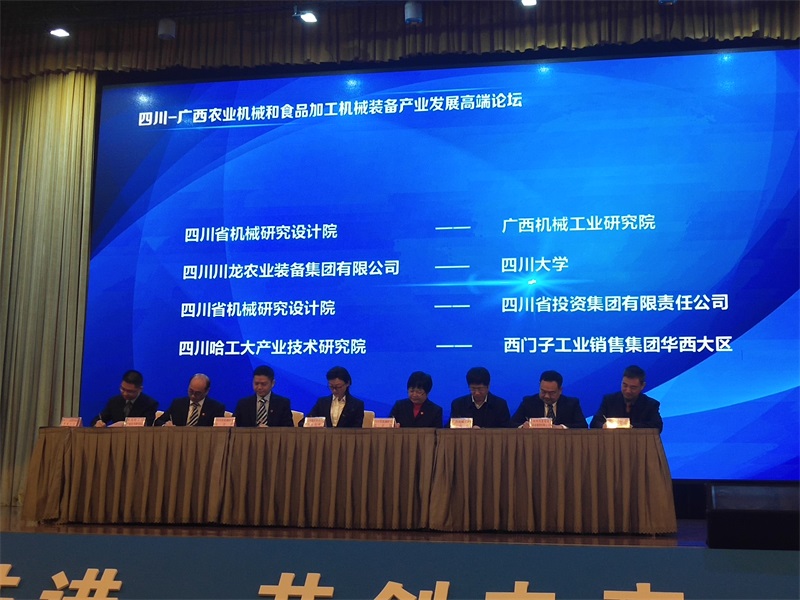 會(huì)上,我院加入四川-廣西農(nóng)業(yè)機(jī)械和食品加工機(jī)械裝備產(chǎn)業(yè)發(fā)展聯(lián)盟并與四川省機(jī)械研究設(shè)計(jì)院簽署戰(zhàn)略合作協(xié)議,達(dá)成長(zhǎng)期戰(zhàn)略合作伙伴關(guān)系。