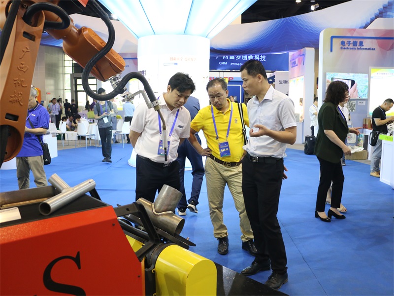 此外,在南寧市區域展區亮相的八自由度機器人也成為了該展區的耀眼展品,吸引了路過的觀眾紛紛駐足。