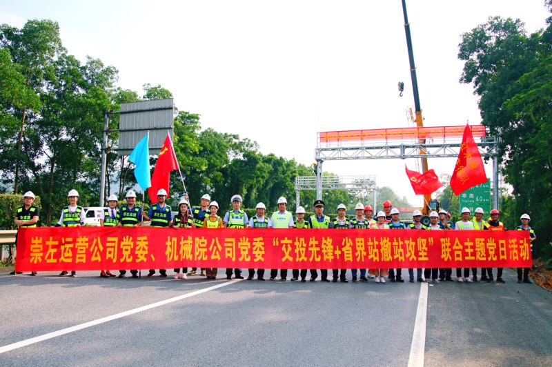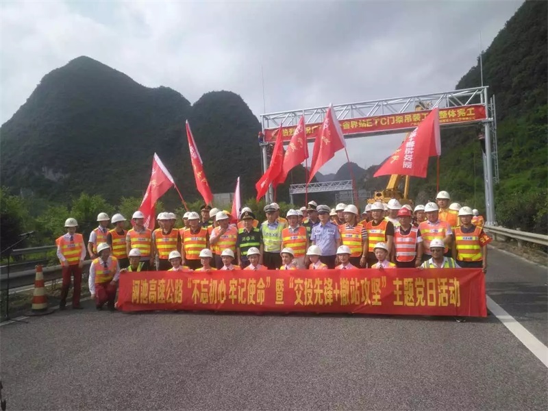 為慶祝門架工程順利完工,展現(xiàn)“不忘初心、牢記使命”主題教育成果,進一步發(fā)揚黨員群眾守初心、擔使命、高揚旗幟、再創(chuàng)佳績的奮斗精神,機械院公司黨委聯(lián)合柳州公司黨委組織開展“交投先鋒+攻堅突破”主題黨日活動暨龍門架吊裝完工儀式,柳州運營公司、廣西交科院、交警、路政、監(jiān)理等有關單位20余人參加活動。