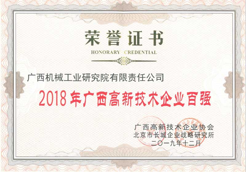 12月24日,廣西高新技術企業百強、創新能力10強、創新活力10強企業榜單發布會在南寧舉行,廣西機械工業研究院有限責任公司從全區的1200家高新技術企業中脫穎而出,位列廣西高新技術企業百強第29。