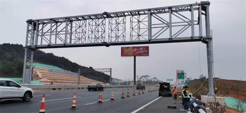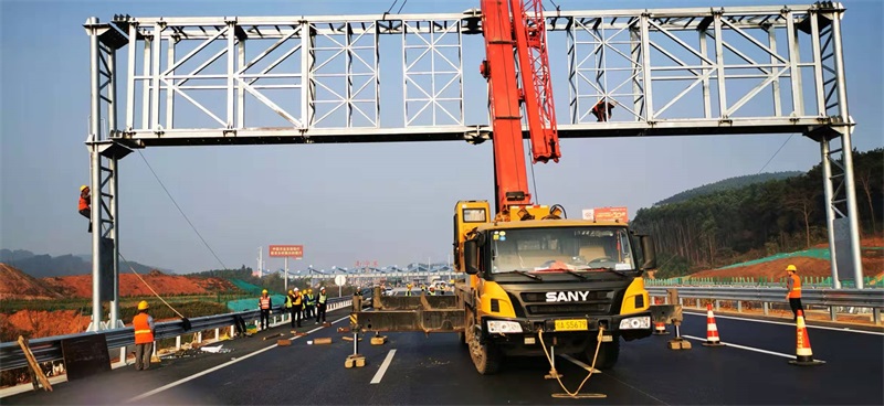 1月8日下午2點,由柳州格瑞米公司生產的廣西第一個情報板門架在南寧東收費站成功吊裝
