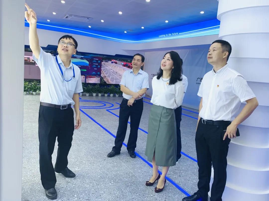 覃虹董事長一行先后走訪了機械院展廳、第一車間和3D打印實驗室,實地查看了機械院在智慧交通、工業機器人、機電設備、數字化解決方案、智能裝備和3D打印六個方面的自主研發成果。