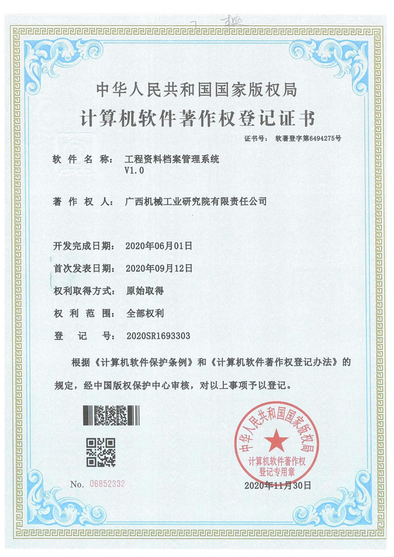 機(jī)械院與新祥公司聯(lián)合開展《公路建設(shè)項目電子檔案驗收的研究應(yīng)用》課題研究,開發(fā)公路電子檔案智慧驗收輔助系統(tǒng),并申請了系統(tǒng)軟件著作權(quán)。