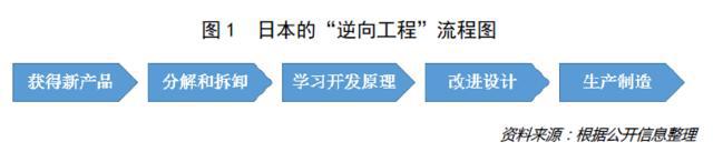 明確了創新的內涵,再回過頭來看日本制造。如前文所述,日本制造業發展前期經歷了一段較長時間的“山寨”過程,但是如果深挖下去,我們會發現日本所做的一切雖說是以模仿為主,但也算作是一種另類的“創新”。比如所謂的“逆向工程”,其對新產品的解構、研究與改進設計,進而到生產制造出全新的商品,均包含著不少產品創新、技術創新與市場創新的影子(參見圖1)。