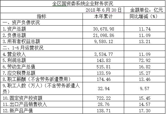 全區國資委系統企業2018年1-6月經濟運行簡況